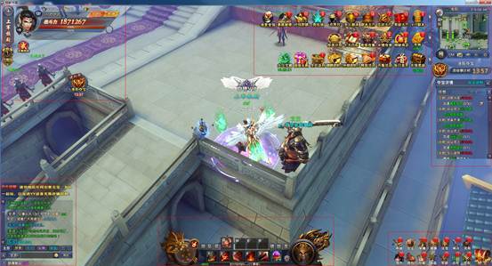 展示玩家可以使用的普通技能、官衔技能、快捷回血药,以及好友系统、 挂机系统、乘骑坐骑、巡城功能、野外组队的快捷操作按钮