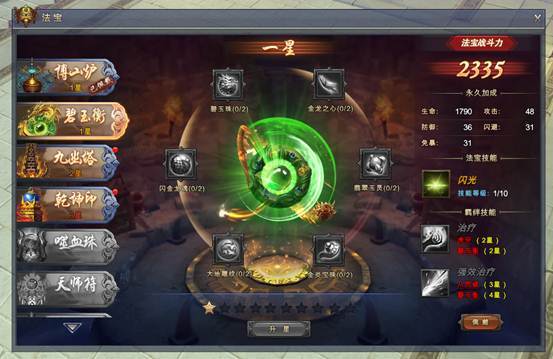 当法宝已经激活后,再次获得相应的部件,即可进行升星,整体操作流程同激活;