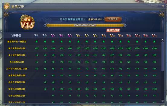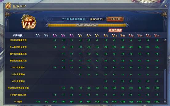只要在游戏中进行充值操作,即会统计玩家所购买的元宝,当购买的元宝 累计达到相应的数量,即会提升VIP等级