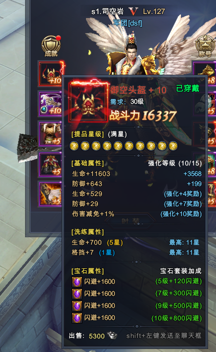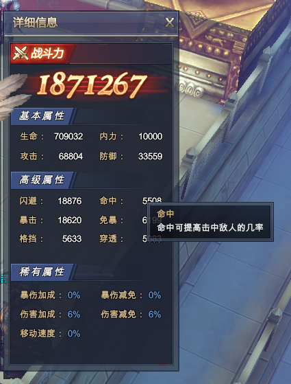 鼠标悬停在装备上可以查看当前装备的具体信息