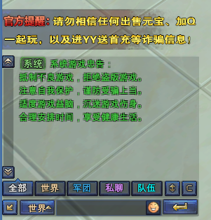 在此可以发送信息与其他玩家聊天,也可以查看相应频道的系统公告或他人聊天信 息